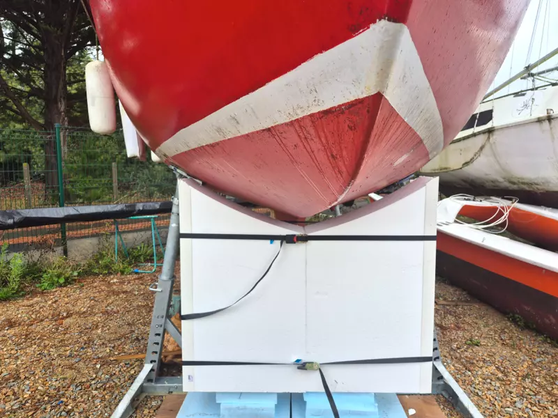 Pour ce projet, nous avons conçu et fabriqué une paire de bers en polystyrène haute densité, parfaitement ajustés à la carène du bateau. Légers, robustes et faciles à manipuler, ces supports offrent une stabilité optimale pour les phases de stockage, d’entretien ou de préparation. Leur découpe précise garantit un maintien sûr sans marquer la coque, tout en assurant une mise en place rapide et un excellent niveau de protection.